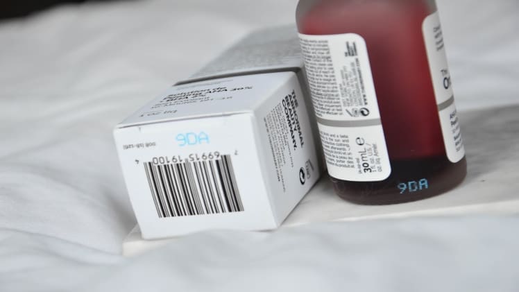 The Ordinary products have a batch code printed on the bottom of the bottle or tube. The batch code is made up of a combination of letters and numbers. It is typically 6 characters long and can be found near the expiration date.